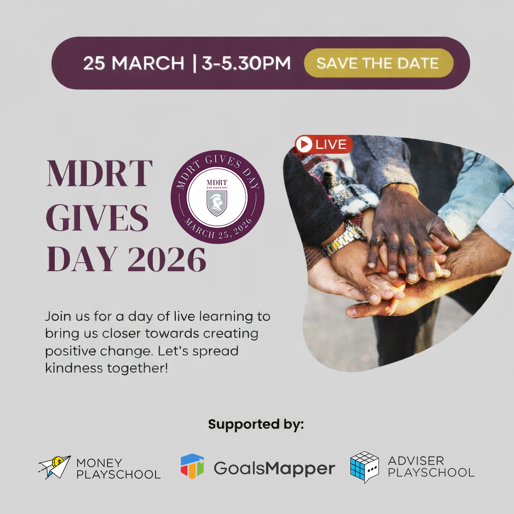 I’m pleased to share that GoalsMapper, together with Adviser Playschool and Money Playschool, is once again supporting MDRT Gives Day. We are honoured to continue standing alongside the industry in a cause that reflects our shared commitment to service and contribution.
